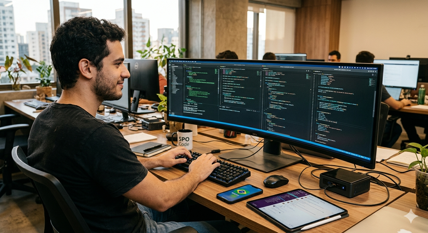 Utilizamos metodologias ágeis (Scrum / Kanban) e as tecnologias mais modernas do mercado para garantir que o seu software seja seguro, rápido e pronto para crescer.